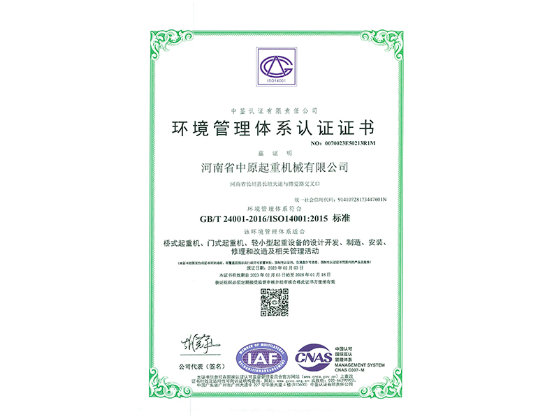 環境管理體系認證證書